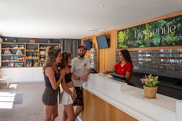 Auf unserem Campingplatz in der Nähe von Amboise, dem Yelloh! Village Parc du Val de Loire möchten wir Sie vor allem glücklich machen und alles dafür tun, dass Sie einen tollen Urlaub in unserer Gesellschaft verbringen können! Zu diesem Zweck stellen wir Ihnen zahlreiche Dienstleistungen zur Verfügung, die Ihnen während Ihres Aufenthalts das Leben erleichtern sollen… So finden Sie an der Rezeption, die in der Hochsaison von 9 bis 20 Uhr durchgehend geöffnet ist (in der Nebensaison von 9 bis 19 Uhr), eine Touristeninformation und einen Ticketschalter, an dem Sie ermäßigte Eintrittskarten für einige Schlösser der Region erwerben können. Kein Anstehen mehr an deren Eingängen! An der Rezeption können Sie auch Souvenirs, Postkarten und andere regionale Tickets kaufen.