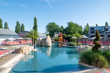 Tauchen Sie in die fröhliche Atmosphäre unseres Aquaparks ein, der mit Rutschen ausgestattet ist, die für Momente des Lachens und der Zweisamkeit sorgen. Lassen Sie sich von unseren Whirlpools verwöhnen und entspannen Sie sich unter unseren Wasserfällen. Auch die Jüngsten kommen in unserem sicheren Planschbecken, das speziell für sie entworfen wurde, auf ihre Kosten, was so für einen lustigen und sorgenfreien Urlaub sorgen wird.