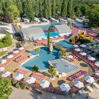 Onze camping nodigt je uit om te komen genieten van het prachtige 500 m² grote waterpark. In het buitenzwembad zijn bubbelbaden, watervallen en een peuterbad aanwezig. Een echt paradijsje dat is gewijd aan waterplezier. Hoewel het waterpark het hele jaar verwarmd is, kunnen de vakantiegangers zelfs bij slecht weer zwemmen in het 200 m² grote binnenzwembad.